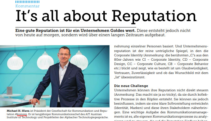 Krisen zu meistern gehört zum Geschäft von Kommunikationsverantwortlichen. Die Coroanakrise rückt das Finanzkapital von Unternehmen in den Mittelpunkt. Wenn Kommunikationsmanager von Kapital sprechen, meinen sie in erster Linie jenes, das sie durch ihre tägliche Arbeit wesentlich mitgestalten – das Reputationskapital. Eine hohe Reputation bildet das Rückgrat eines Unternehmens und jeder Krisenmanager ist bestrebt, sich im Notfall dieses Kapitals bedienen zu können. Es ist genauso überlebensnotwendig wie eine solide Finanzdecke. Die Gesellschaft für Kommunikation und Reputation #komrep führte in den vergangenen zehn Jahren über sechzig Reputationsanalysen durch, die alle zeigen: das Unterstützungspotential wichtiger Marktbegleiter hängt zu sechzig Prozent von einer hohen Reputation ab.